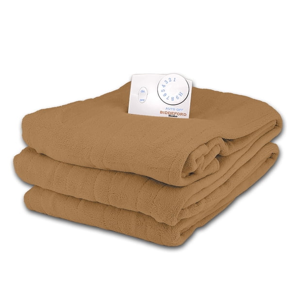 Biddeford blankets micromink sherpa electric heated blanket, beige.