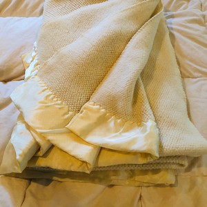 Vintage satin trim acrylic blanket cream ivory waffle weave 90 x 98 queen made in the usa seacoastbargains.