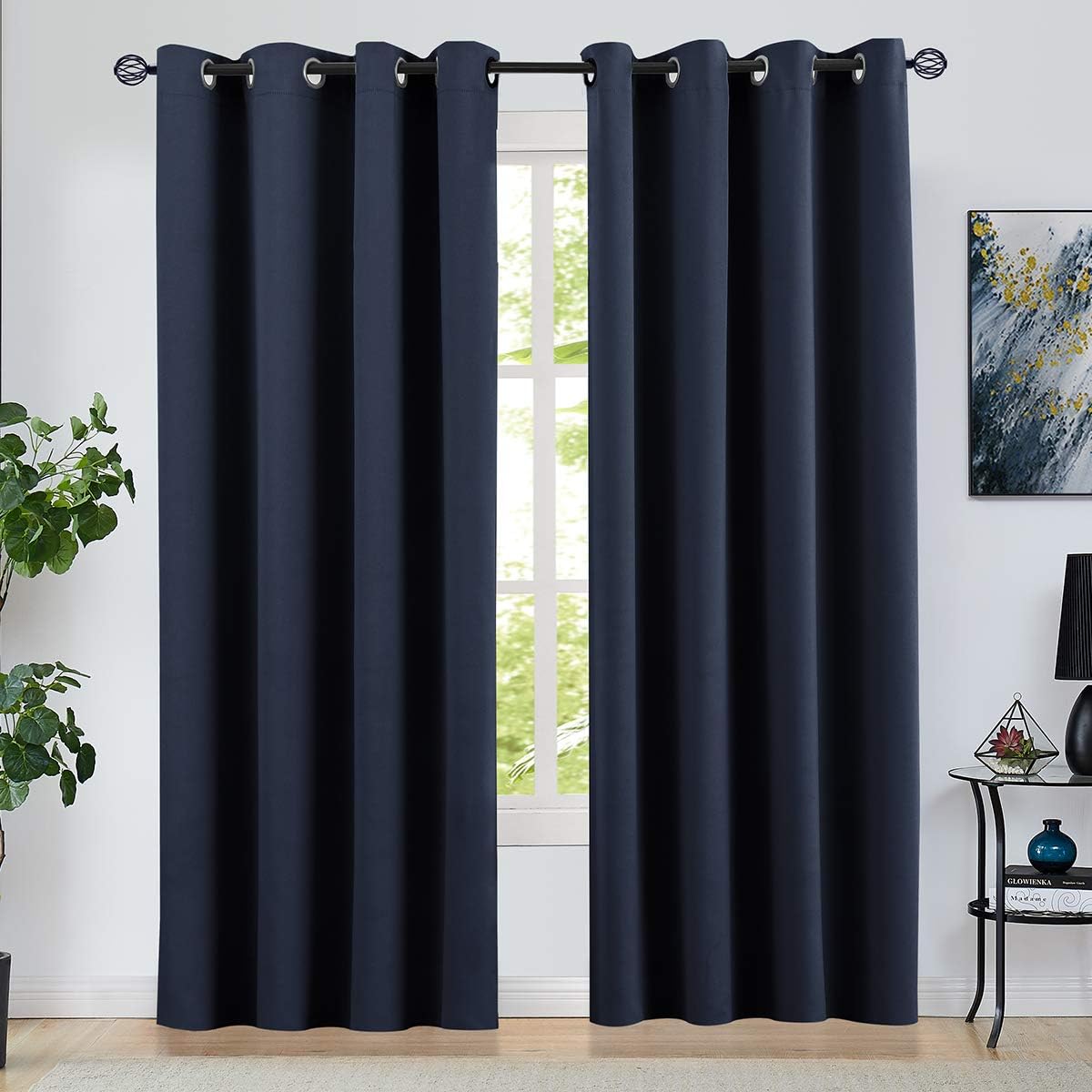 Vertkrea stripe window curtain striped room window treatment grommet curtains 52 × 63 inches stripes drapes for bedroom living room, blue, set of 2 panels.